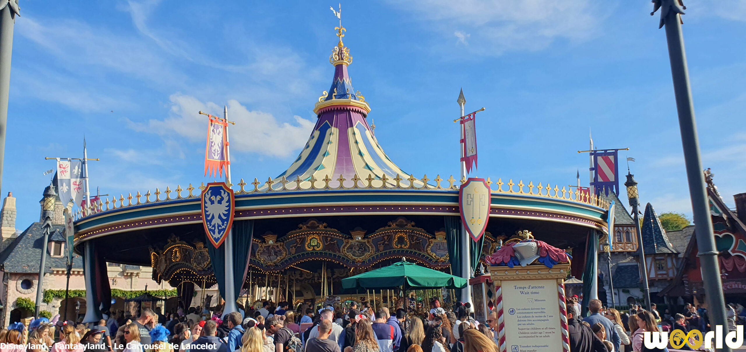 Trônant majestueusement au centre de Fantasyland, Le Carrousel de Lancelot est un hommage à la légende arthurienne et à l’âge d’or des manèges d’antan. Véritable bijou de bois et de lumière, il incarne la poésie, la noblesse et la nostalgie qui caractérisent l’univers des contes de fées.