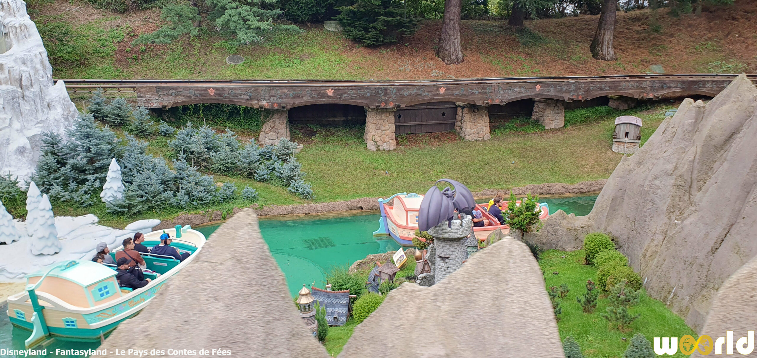 Poétique et délicat, Le Pays des Contes de Fées est une balade en bateau qui invite les visiteurs à explorer les mondes miniatures issus des plus grands classiques Disney. Loin des sensations fortes, cette attraction privilégie la contemplation, la finesse et la beauté artisanale.