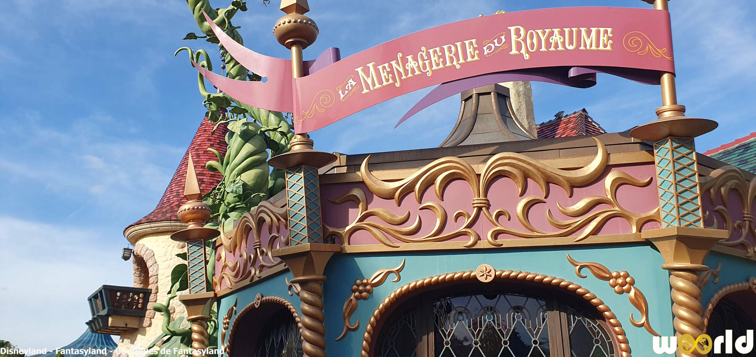 Sir Mickey’s Boutique : dédiée à Mickey et le Haricot Magique, elle offre vêtements, chapeaux, peluches et accessoires. La décoration combine humour et détails géants — un haricot magique grimpe jusqu’au plafond !