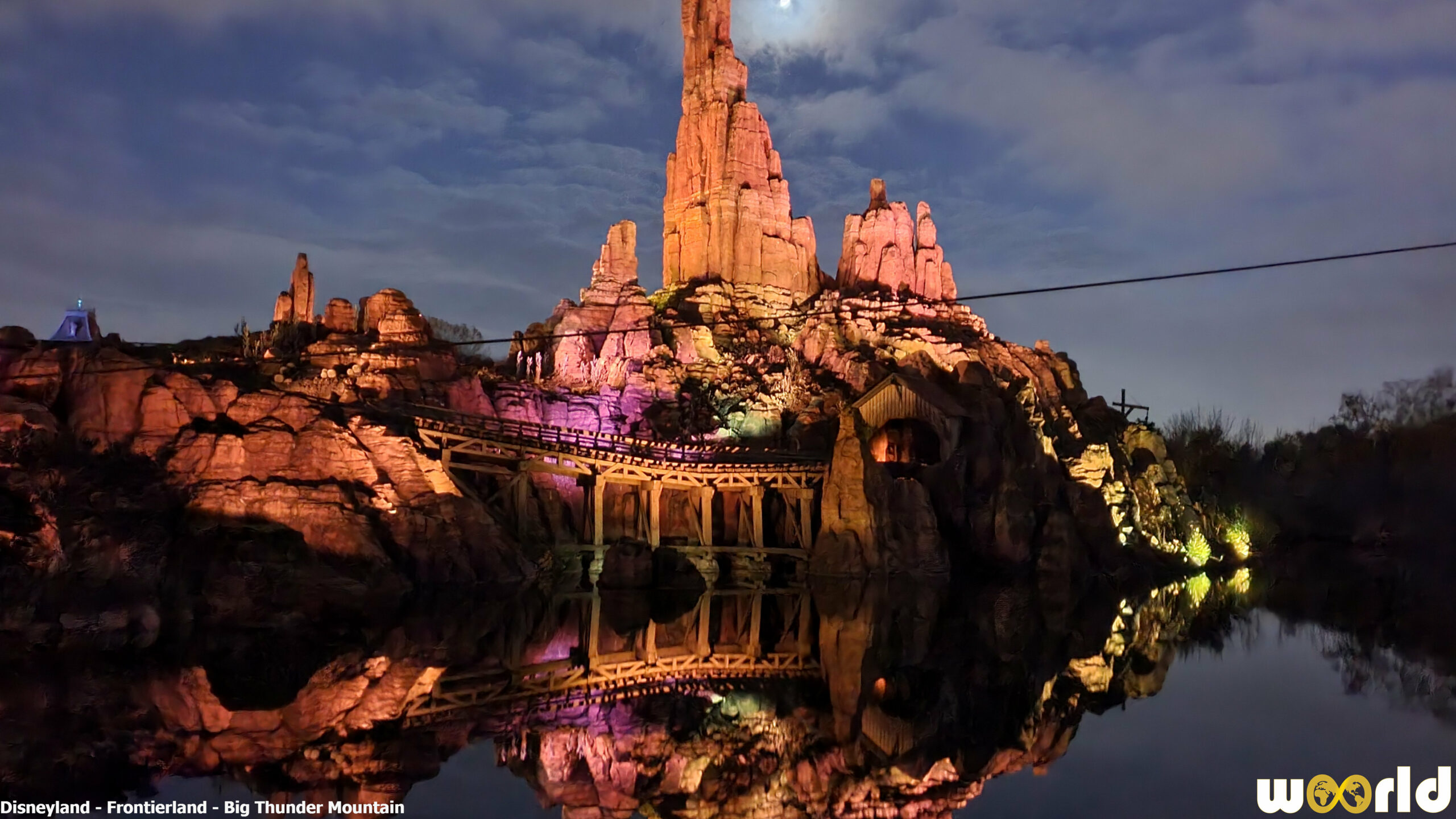 De jour, l’expérience est spectaculaire, mais la nuit elle devient magique grâce aux éclairages qui illuminent la montagne et se reflètent sur l’eau. Big Thunder Mountain est bien plus qu’un grand huit : c’est une véritable aventure scénarisée qui plonge les visiteurs dans la légende de Thunder Mesa.