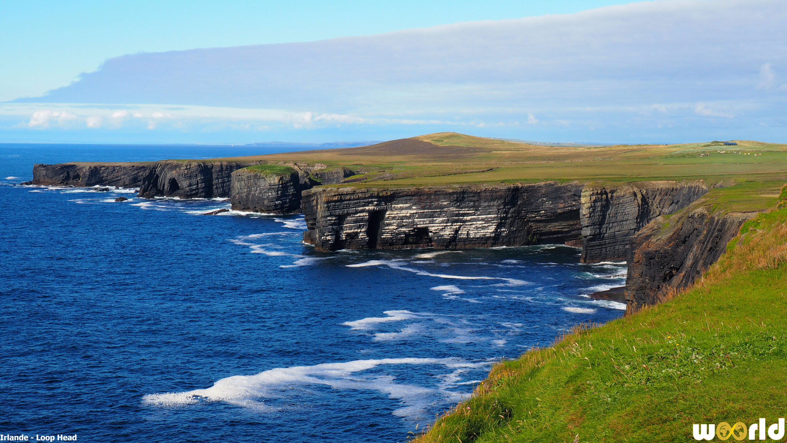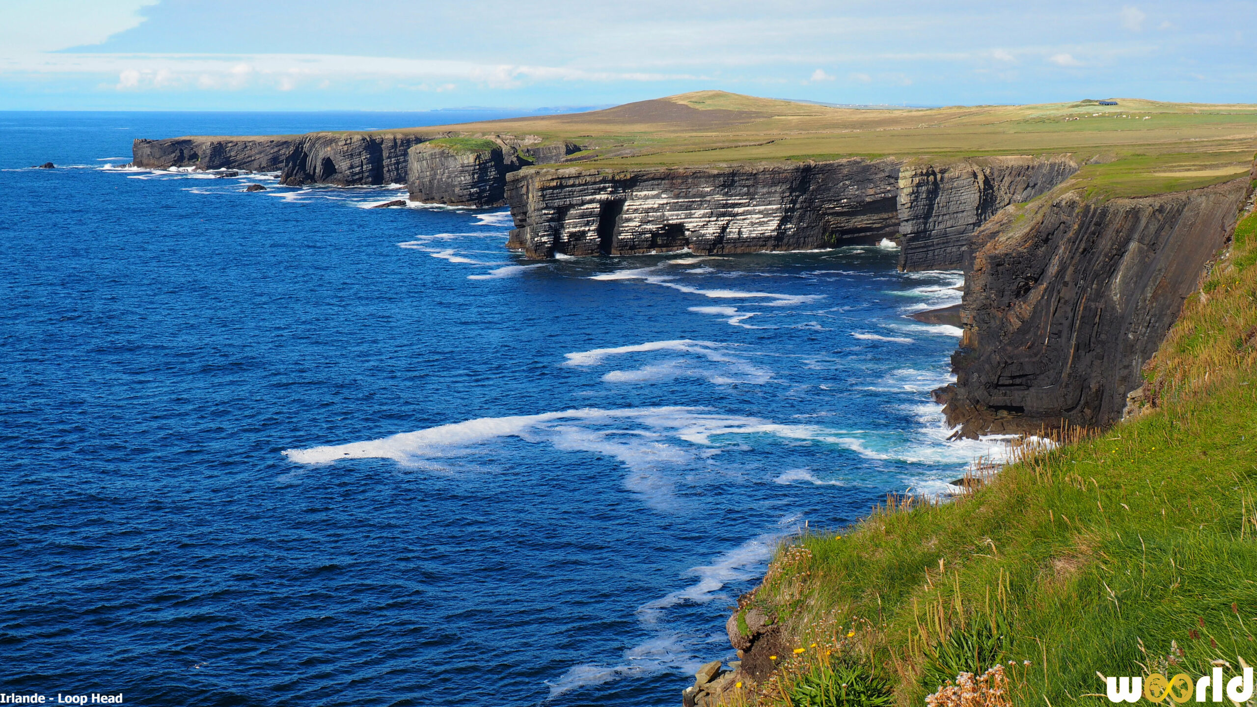 À l’extrémité ouest du comté de Clare, la péninsule de Loop Head donne l’impression d’arriver au bout du monde. Ici, l’Atlantique frappe directement les falaises, le vent balaie les prairies et un phare blanc veille depuis des siècles sur l’entrée de l’estuaire du Shannon. Moins célèbre que d’autres sites de la côte ouest, Loop Head offre pourtant certains des panoramas les plus spectaculaires et les plus préservés d’Irlande.